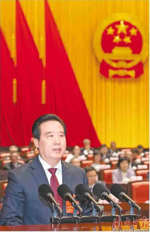 1月27日,省十四届人大五次会议举行第二次全体会议。省人大常委会主任黄楚平作常委会工作报告。图片来源:南方日报