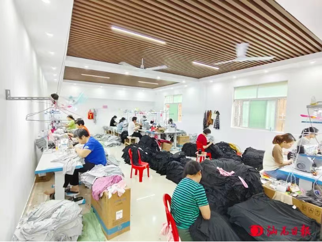 护南村引进制衣厂,帮助群众实现“家门口就业”。图为该村制衣厂工人在生产。