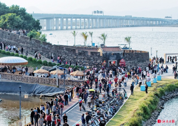服务提质留住消费活力。城区依托长沙古炮台,打造“地道小吃+非遗展示+海防研学”融合空间,吸引长沙湾高速服务区休息的游客驻足,成功将“过路经济”转化为“落地经济”,其“交农文旅商”融合经验获央媒、省媒报道。同时,培育精品民宿、主题餐饮、文创市集、休闲咖啡等服务业态,打造完整消费闭环。长沙村“炮台咖啡”日均接待游客超3000人次,小岛渔业村发展“海岛咖啡经济”,新北村青创市集单日最高营收突破1.2万元,实现游客“愿意来、留得下、肯花钱”的良性循环。
