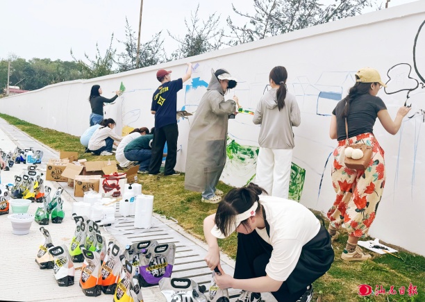 大学生团队绘制墙绘艺术,提升村貌。