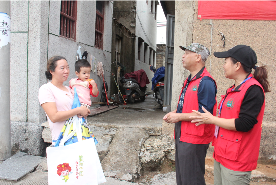 志愿者们兵分三路,共同发力,齐齐宣传。有的志愿者在菜市场门口拉起了宣传横幅并设置了禁毒与环境保护宣传摊位,整齐的摆放着宣传礼品,通过邀请村民参与“禁毒知识你我知”有奖问答的形式,将禁毒知识与环境保护元素融合到活动中,以趣味的方式增强村民对毒品的认识。有的志愿者在驻村工作组和村委干部的陪同下,以穿街走巷,面对面的形式与村民交流并派发《禁毒三字经》。有的志愿者深入新兴小学开展禁毒宣传讲座,被学生们称为“叔公”的村委书记蔡萍谆谆教导句句叮咛学生们要把禁毒意识常放心头。