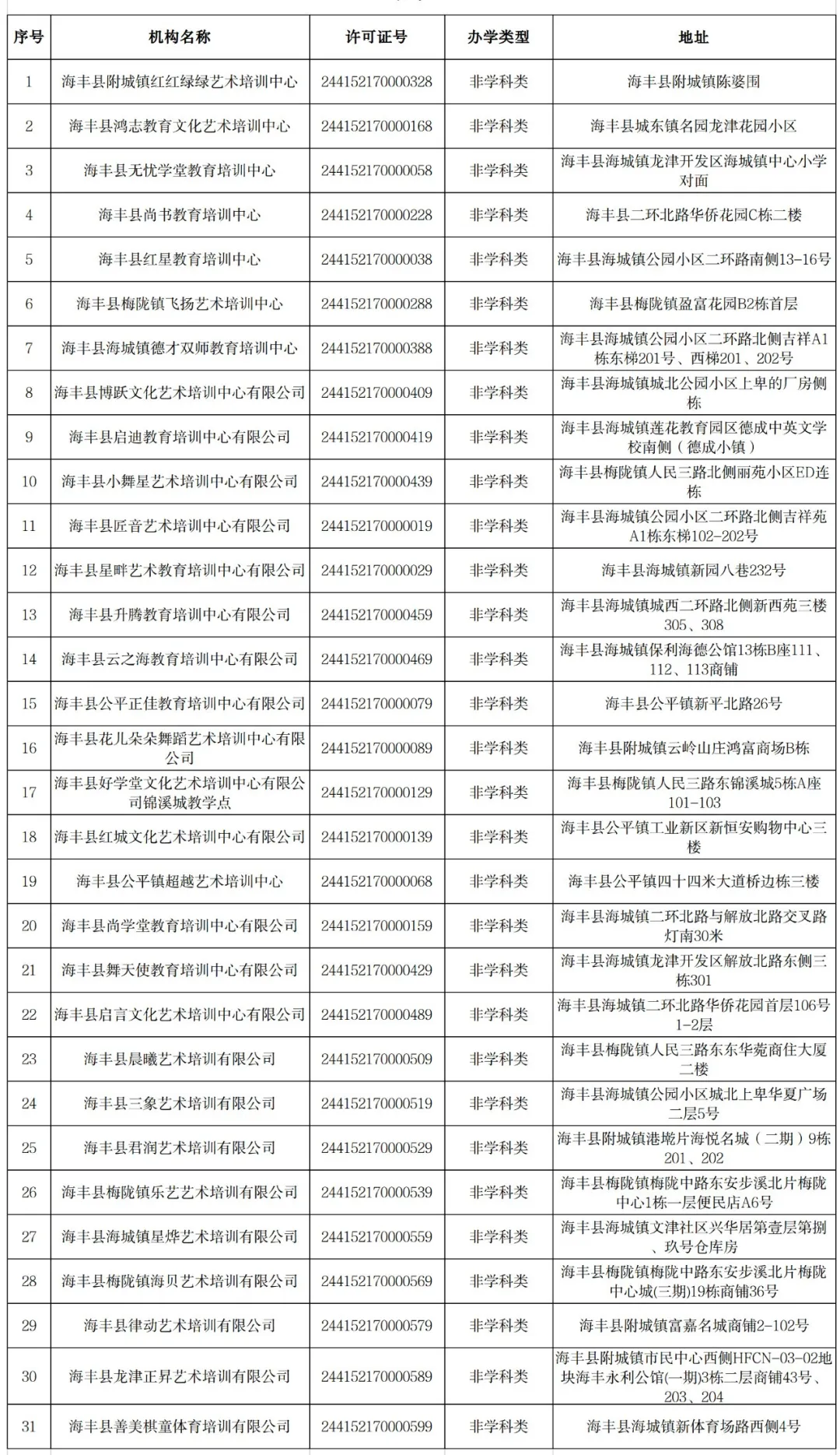 为规范pc蛋蛋(中国)开奖记录查询站 校外培训机构办学行为,营造积极健康的校外培训环境,现将截至2025年10月底已纳入全国校外教育培训监管与服务综合平台监管的155家面向中小学生校外培训机构白名单予以公布。