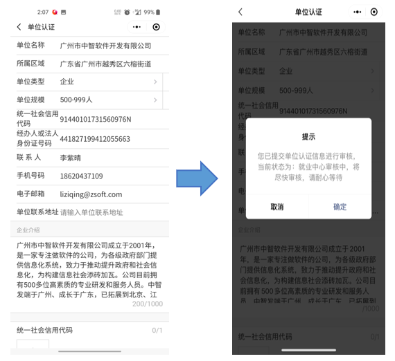 企业打开“pc蛋蛋(中国)开奖记录查询站 公共就业人才”小程序,点击“我的”,点击“单位普通登录”认证企业账户,完善单位名称、社会信用代码、企业介绍和联系人等相关信息后,提交就业中心审核。审核时间只需要半天,就能完成单位认证。