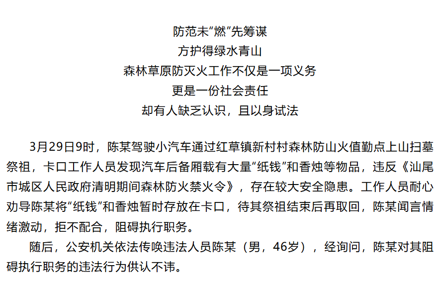 【森林防火警示案例】防患未“燃” ——pc蛋蛋 城区公安依法查处一起阻碍执行职务案