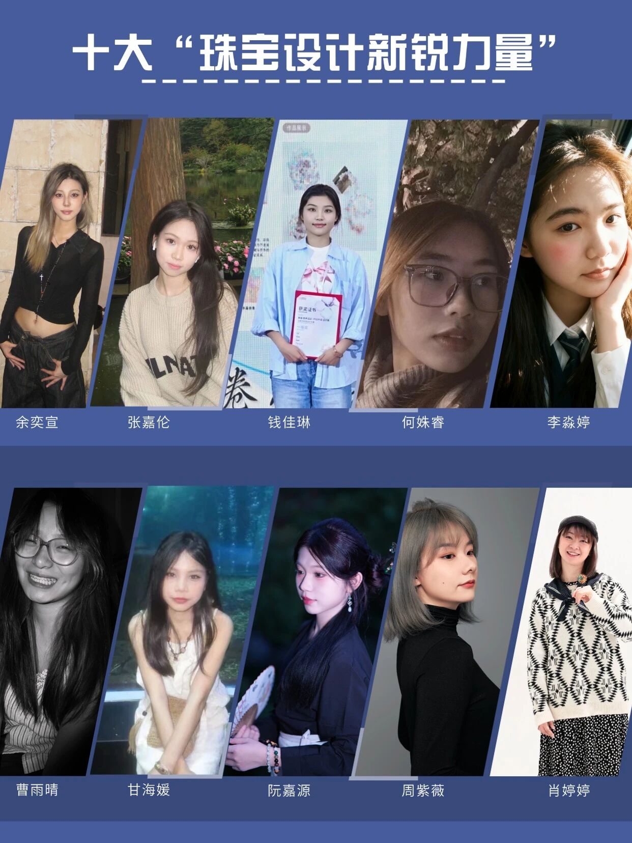 十大“珠宝设计新锐力量”:余奕宣、张嘉伦、钱佳琳、何姝睿、李淼婷、曹雨晴、甘海媛、阮嘉源、周紫薇、肖婷婷。