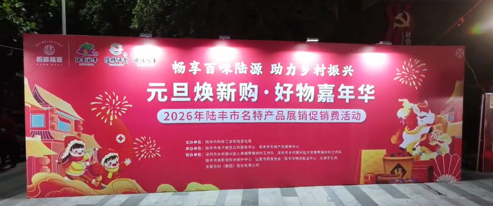 为集中展示陆丰市国家级电子商务进农村综合示范项目成果,加快推进陆丰区域公用品牌建设,进一步提升陆丰名特产品的知名度与影响力,助推乡村产业振兴、拓宽农产品销售渠道,由陆丰市科技工业和信息化局主办,陆丰市电子商务公共服务中心、陆丰市农特产品展销中心承办的“元旦焕新购·好物嘉年华”2026年名特产品展销促消费活动于2025年12月31日至2026年1月2日在陆城市民广场成功举办。