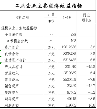 2025年1—5月工业企业主要经济效益指标