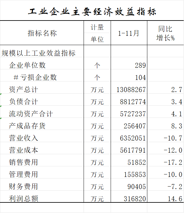 2025年1—11月工业企业主要经济效益指标