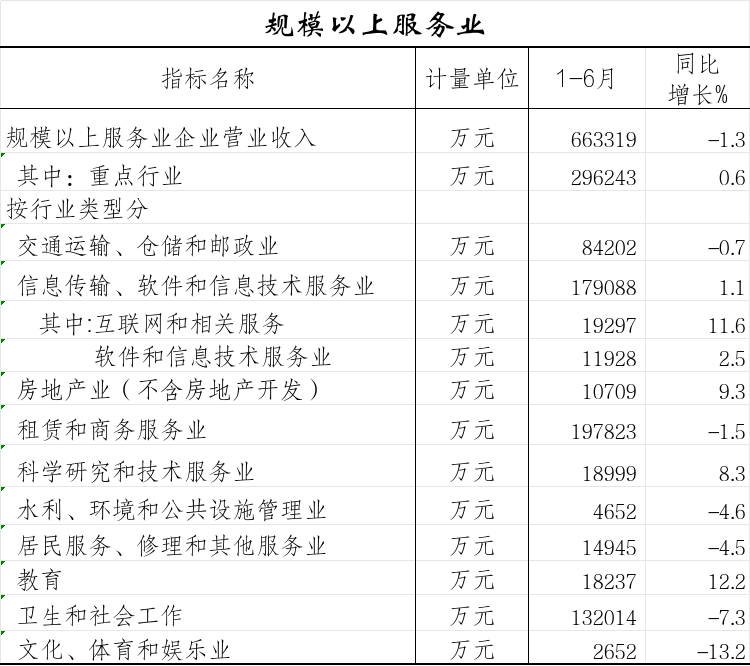 2025年1—6月规模以上服务业