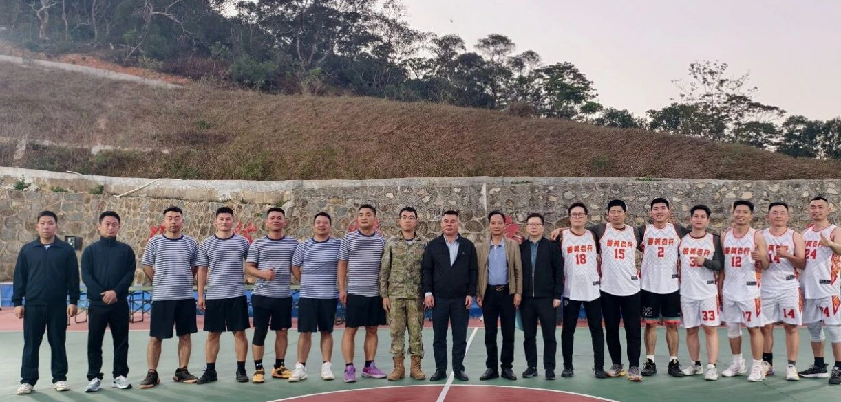 慰问仪式结束后,篮球友谊赛在部队篮球场正式拉开帷幕。军地双方运动员身着统一队服,精神抖擞、斗志昂扬。赛场上,传球、运球、投篮、防守动作行云流水,参赛选手展现出顽强拼搏、团结协作的战斗作风,双方比分交替上升,赛场气氛紧张激烈又不失友好和谐。场外,欢呼声、呐喊声、加油声此起彼伏,军民同心的热烈氛围感染着每一个人。整场比赛不仅展现了双方良好的精神风貌,更在切磋交流中增进了理解、加深了情谊,成为军民鱼水情深的生动写照。