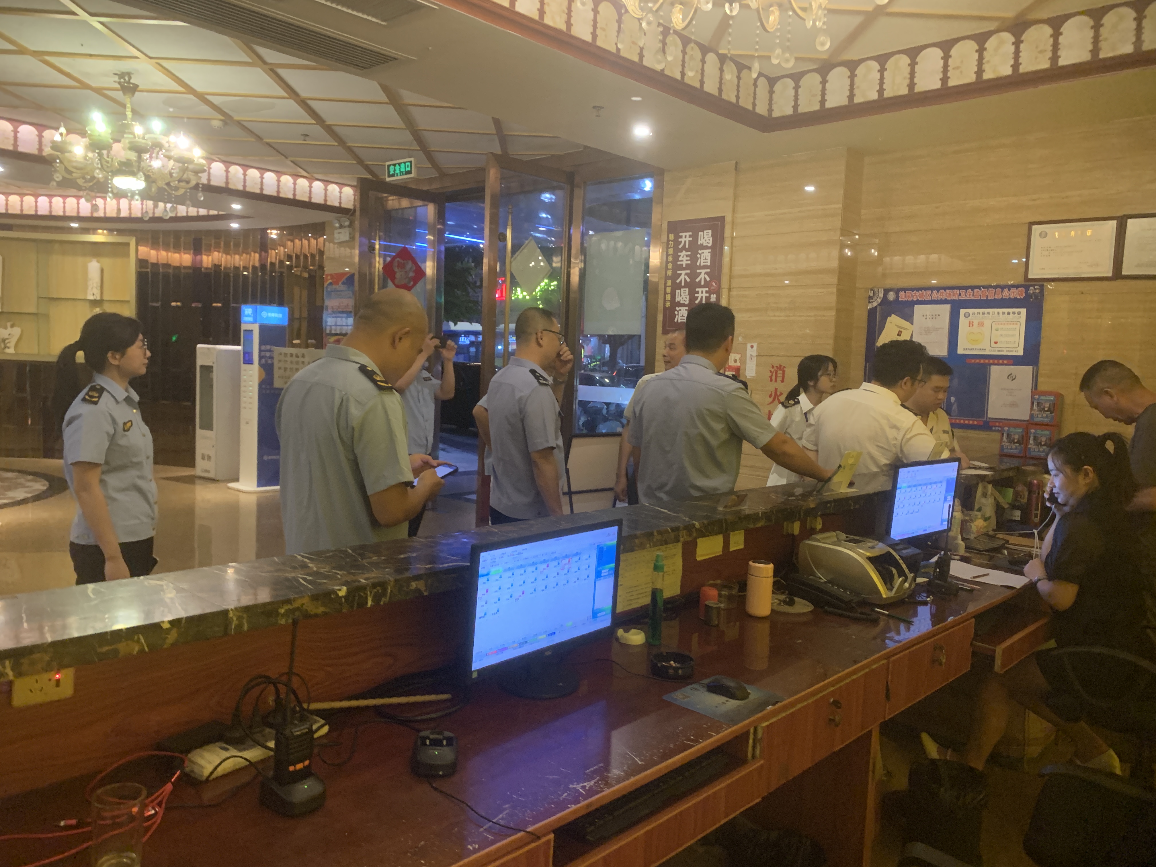 本次专项检查覆盖综合医院、住宿场所、文化娱乐场所供水单位等重要场所,围绕医疗卫生、经营单位主体资质、人员资质具备情况及传染病预防措施落实情况、从业人员健康证持有情况及卫生管理制度落实情况、顾客用品用具、公共区域清洁消毒执行情况、游泳场所水质每日自检公示情况与循环过滤设备运转状态、二次供水单位设施维护、定期清洗消毒及水质检测报告公示情况等关键环节进行深入排查。截至目前共检查1家综合医院,马宫街道保利金町湾旅游度假区和市区的部分住宿场所、包括菲凡、魅力会、唐会等多家娱乐文化场所,同时检查辖区内的粤海水务公司、宝楼村集中供水和鸿景园二期、金海明珠、名门御庭等部分小区二次供水的供水情况。此次节前检查共派出执法人员84人次、执法车辆20余辆次,共发现问题下达卫生监督意见书18份,并要求相关负责人立行立改。同时根据“谁执法,谁普法”的相关要求,执法人员向经营管理人员宣传卫生法律法规,将有关要求落实到位,保证合法经营。进一步压实经营主体责任,增强责任意识,切实提升pc蛋蛋(中国)开奖记录查询站 城区的假期旅游服务质量。